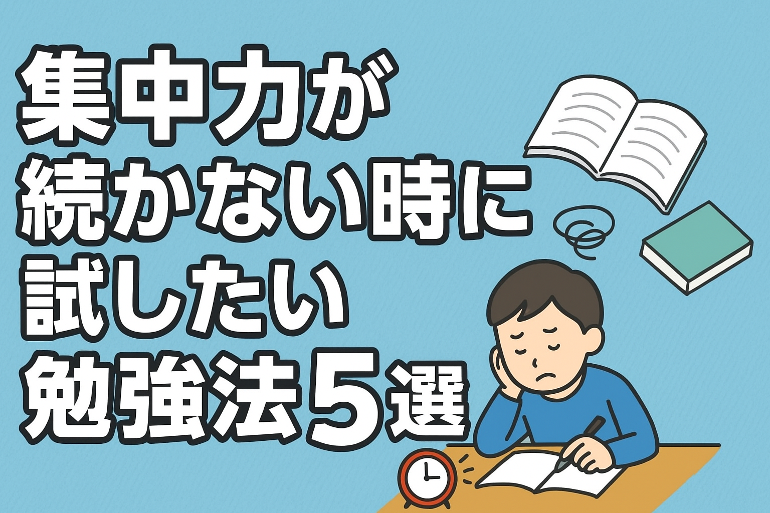 今回は、僕が実際に試して効果を感じた「集中力が続かない時におすすめの勉強法」を5つ紹介します。