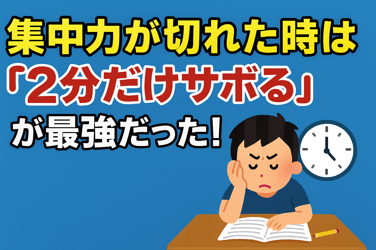 「集中力が続かない」と悩む時こそ、無理に頑張るより “2分だけサボる” を取り入れてみましょう。